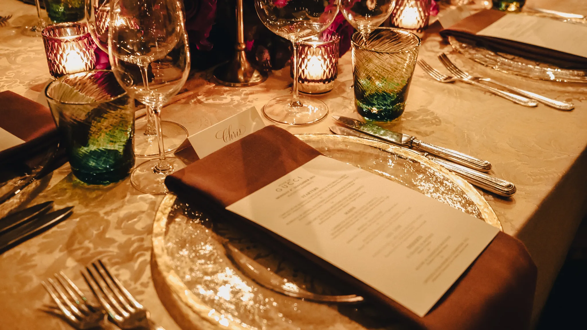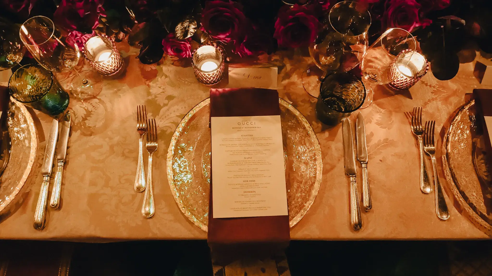 The location couldn’t have been more fitting being the exquisite Italian restaurant Matteo’s at Annabel’s. We transformed the restaurant with cascading roses and subtle touches from the Gucci brand, hand calligraphy menus and all lit by candle light. It truly was a memorable evening.